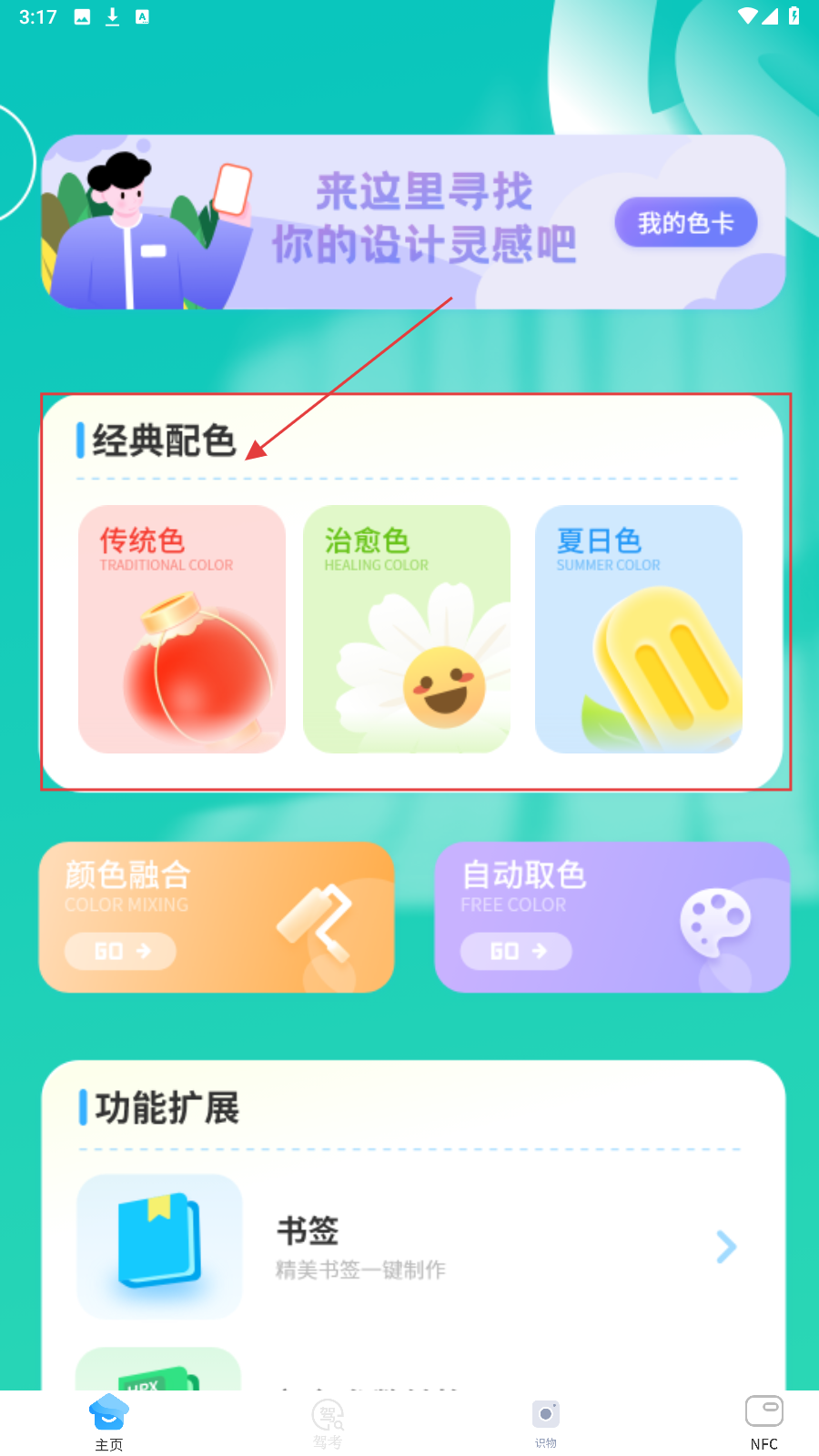 1、进入界面,可从【经典配色】选风格,点击【传统色-TRADITIONAL-COLOR】等探索。