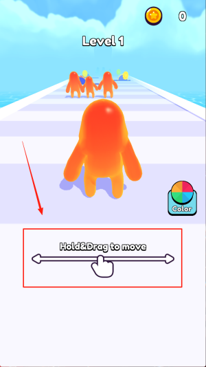 1、开始移动:看到“Level 1 Hold&Dragto move”提示后,用手指按住并拖动角色前进。
