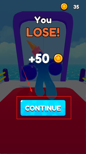 4、接受结果:若看到“35 You LOSE! +50 CONTINUE”,点击继续按钮领取安慰积分并重试。