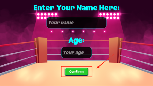 2、填写资料:在“Enter Your Name Here: Your name Age: Your age”界面输入昵称和年龄后,点“Confirm”确认。