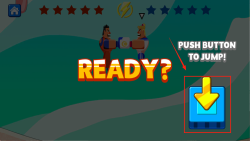 3、准备起跳:出现“PUSH BUTTON TOJUMP! READY?”提示时,按下按钮让角色跳跃,做好开局准备。