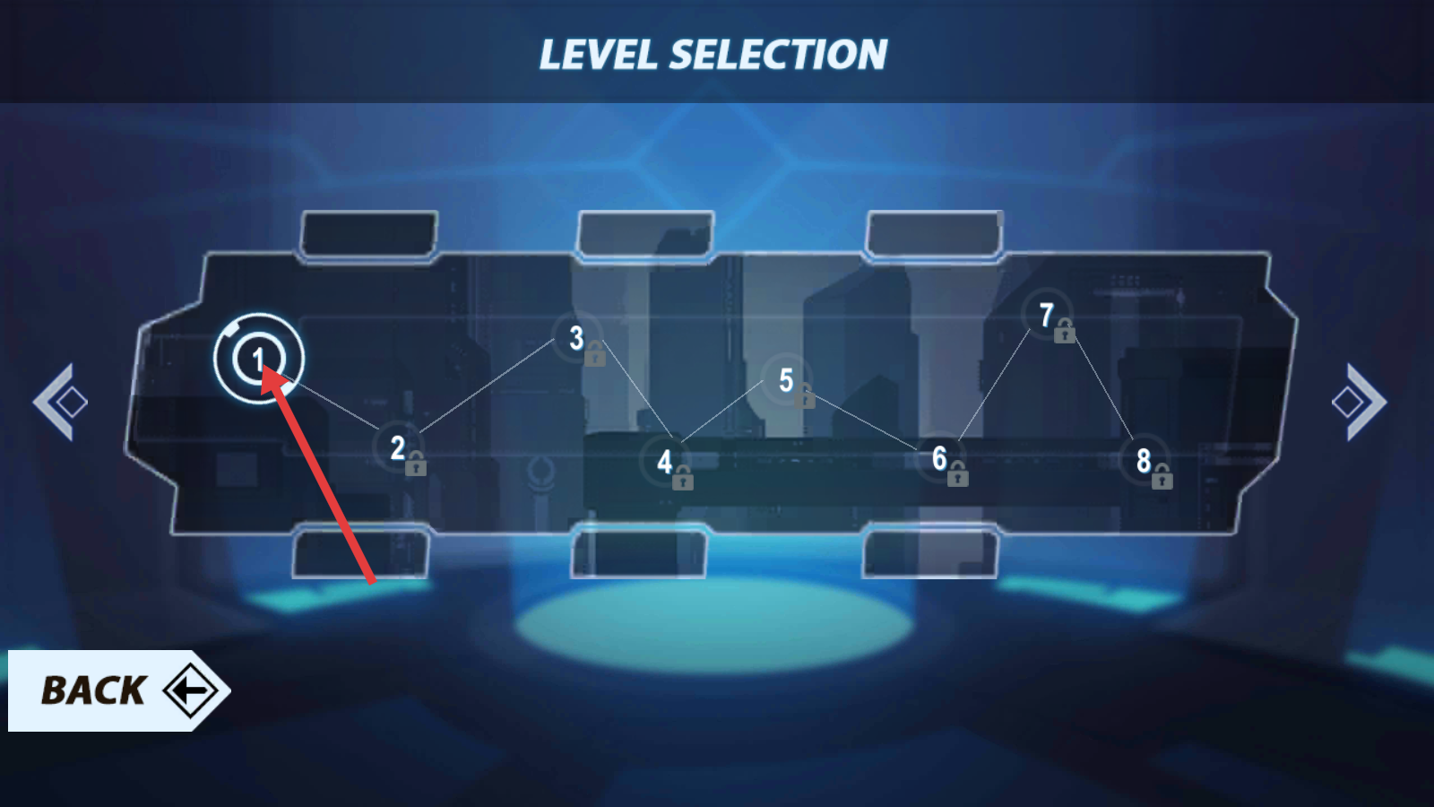 1、在【LEVEL-SELECTION】界面选【1】号关卡开始,按序推进解锁后续关卡,稳扎稳打开启冒险。