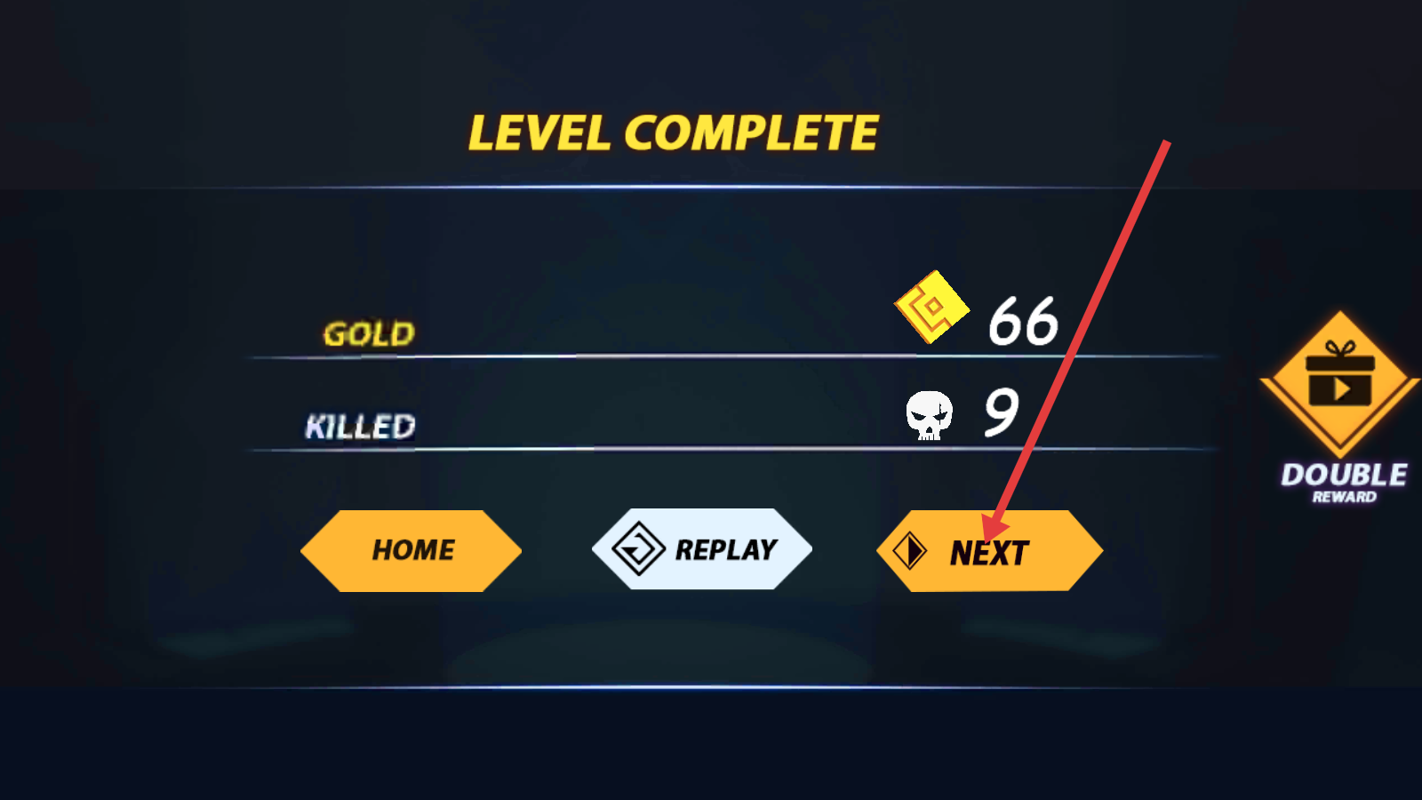 4、关卡完成后点【NEXT】按钮,推进至下一关,积累【GOLD】与击杀数强化角色。