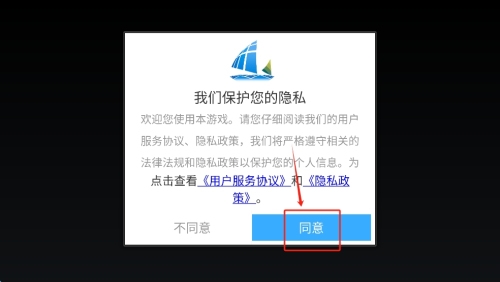 1、同意隐私条款:在游戏启动界面,点击“同意”按钮以接受隐私条款,继续游戏进程。