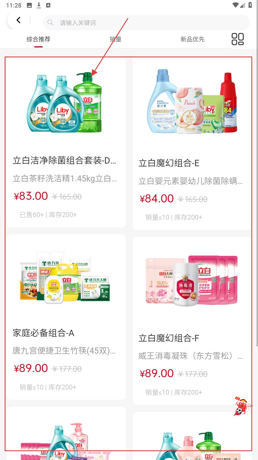 3、商品列表页,依据综合推荐、销量等排序,选心仪商品点击进入。