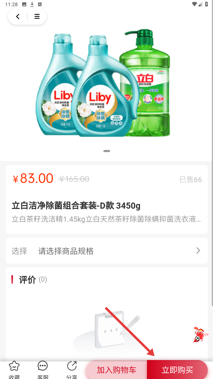 4、商品详情页,选规格后点【立即购买】或【加入购物车】完成购物。