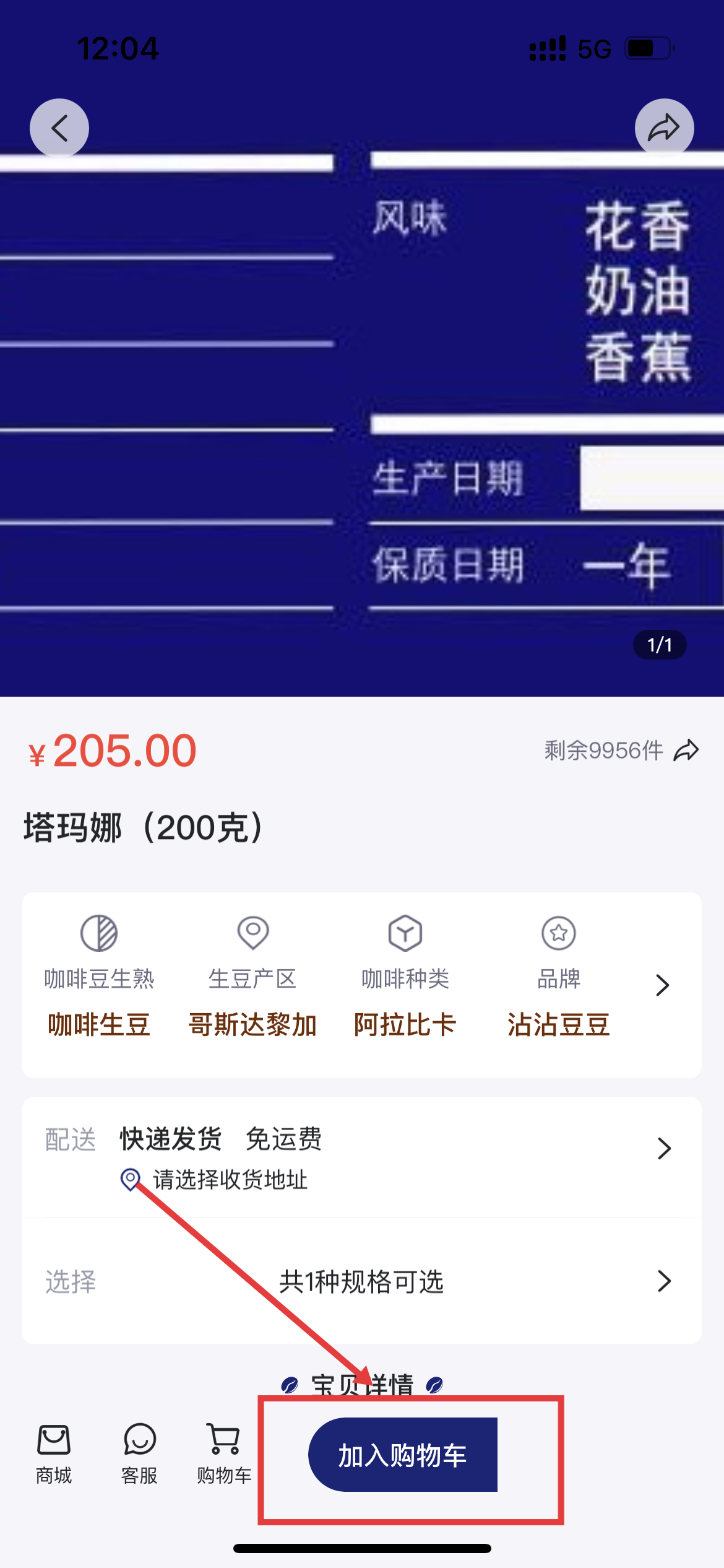 3、进入商品详情页,确认信息后点【加入购物车】,准备购买。