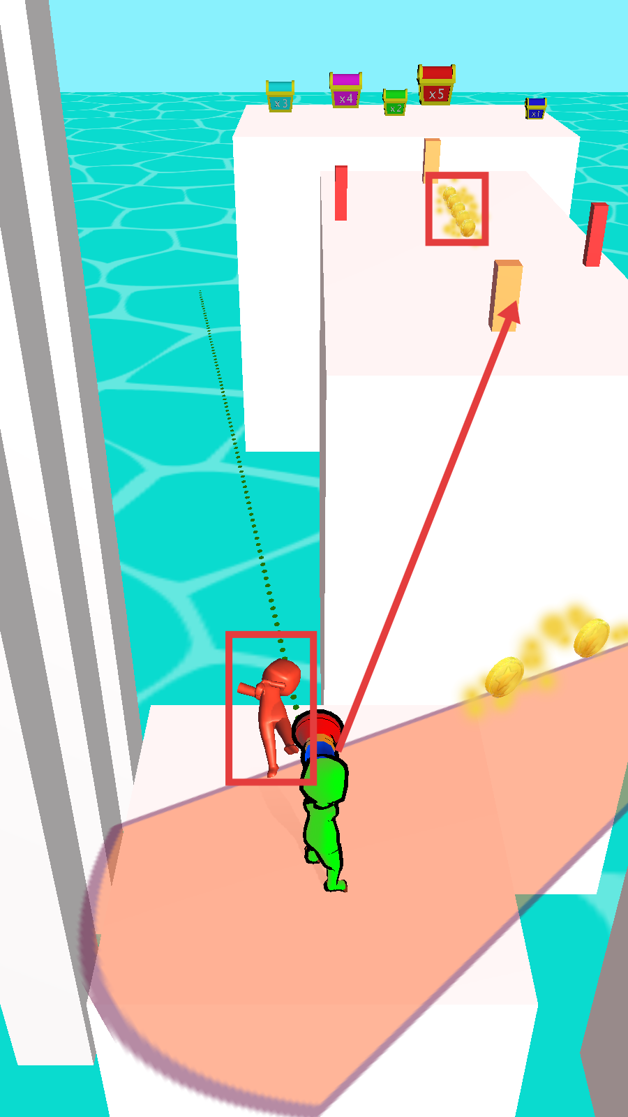 3、遭遇【红色-敌人】时优先击败,同时收集【金币-道具】,提升通关收益与进度。