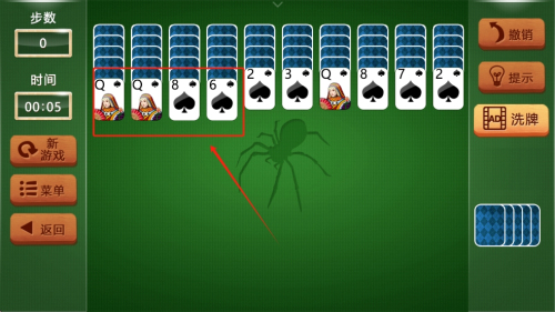 4、进行游戏:在游戏界面中,按照游戏规则进行操作,例如在“蜘蛛扑克”中整理纸牌。