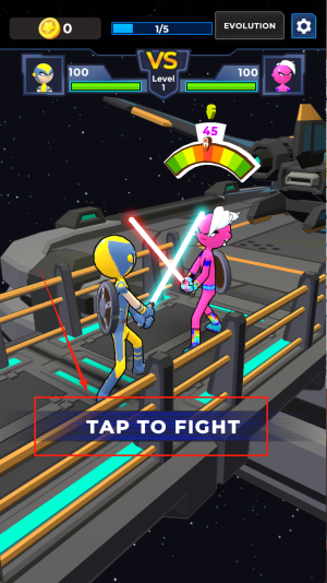 2、开始进化:在“EVOLUTION 1/5”界面点击“TAP TO FIGHT”进入下一场战斗。