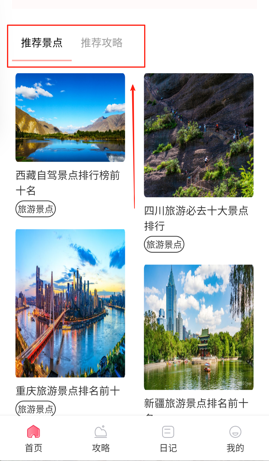 1、打开APP注册账号后进入首页,在搜索栏输入目的地或浏览推荐景点,查看详细攻略包含交通、住宿、美食等实用信息。