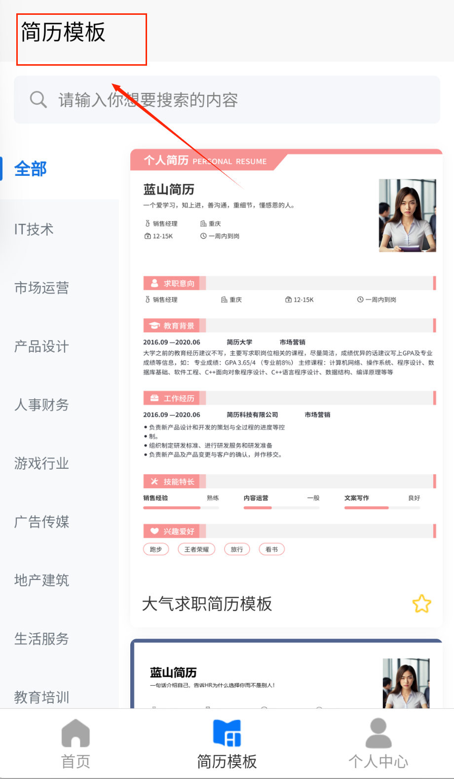 2、丰富的模板资源覆盖互联网、金融、教育等主流行业,定期更新紧跟招聘趋势,特殊岗位如设计师提供作品集模板。