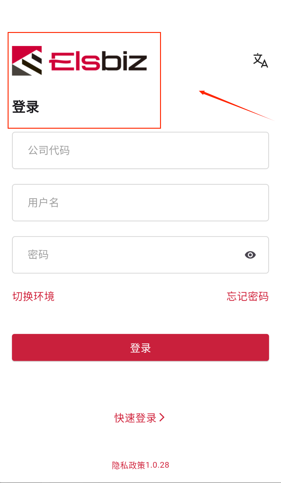 1、打开软件就能看到醒目的红黑配色Elsbiz标志,顶部显示当前时间,右上角有语言切换按钮可以中英文切换。