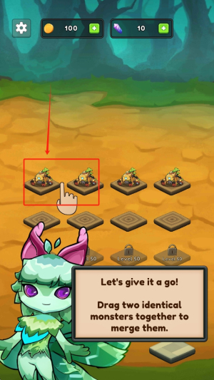 3、合并怪物:按照提示拖动两个相同的怪物到一起,合并它们以获得更强大的怪物。
