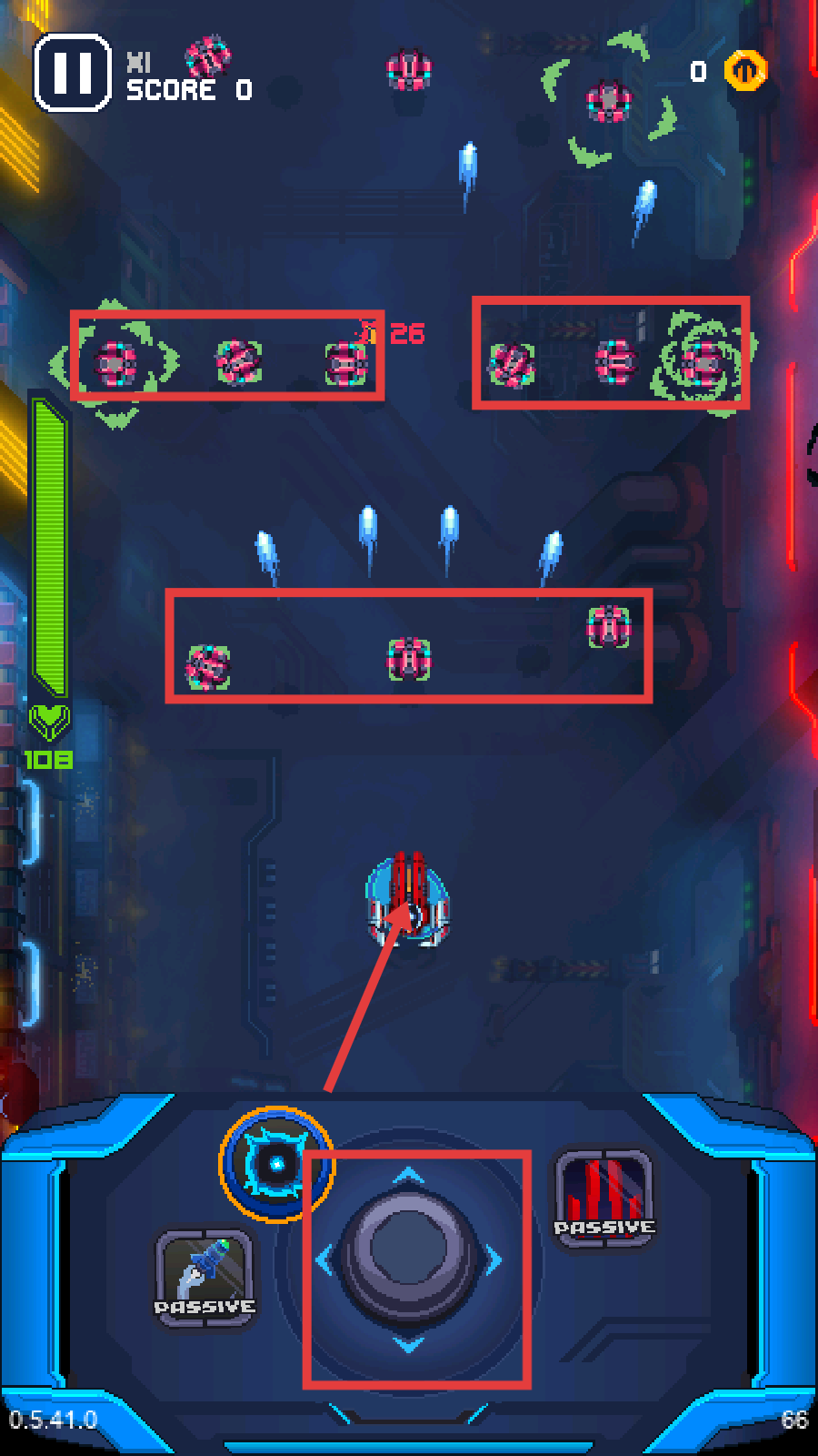 2、战斗时用底部摇杆操控角色,规避敌人攻击,优先清理密集敌方单位,推动【SCORE-0】增长。