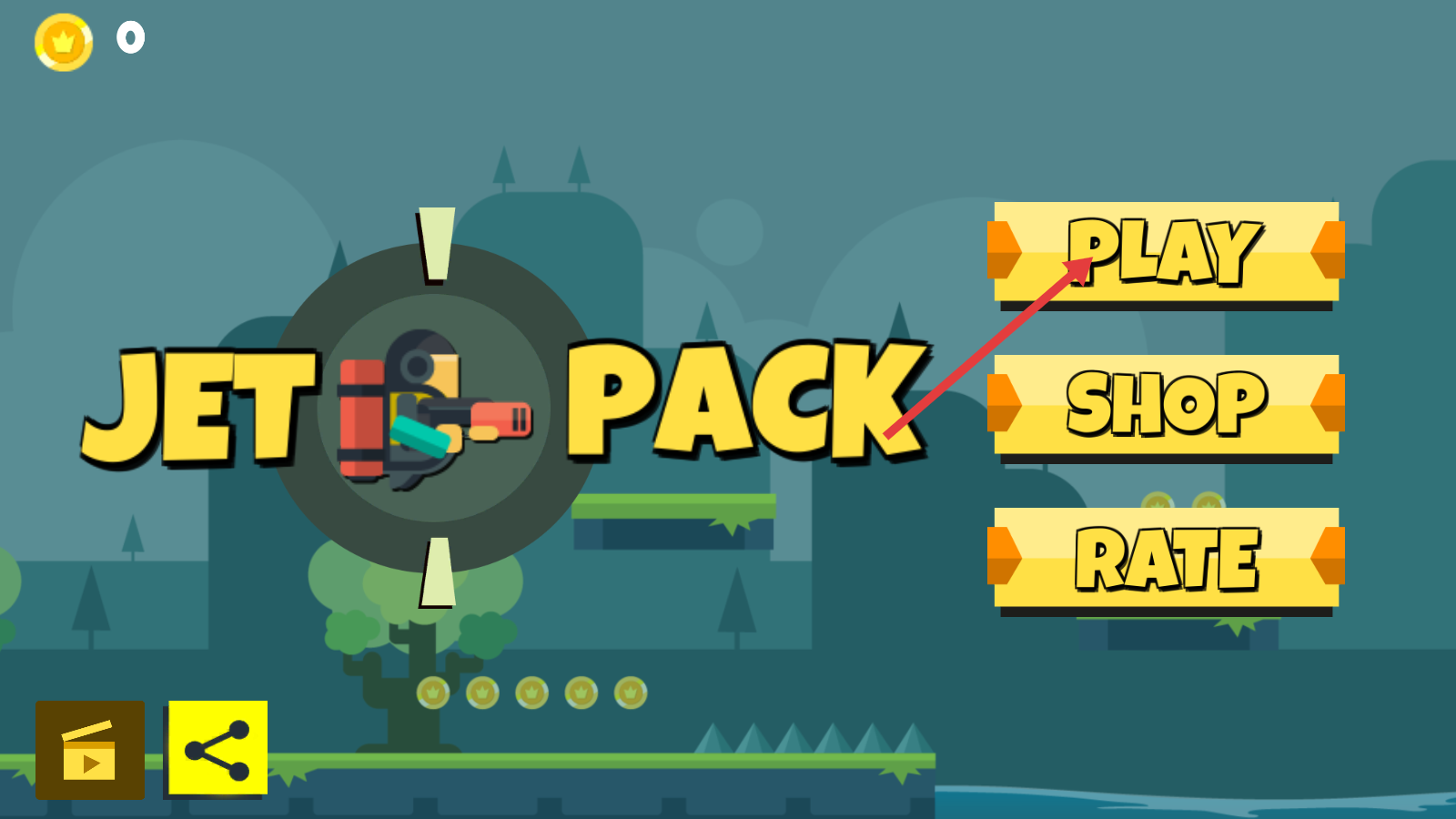 1、主界面点击【PLAY】,进入【JET-PACK】游戏,初始金币为0,开启飞行冒险之旅。
