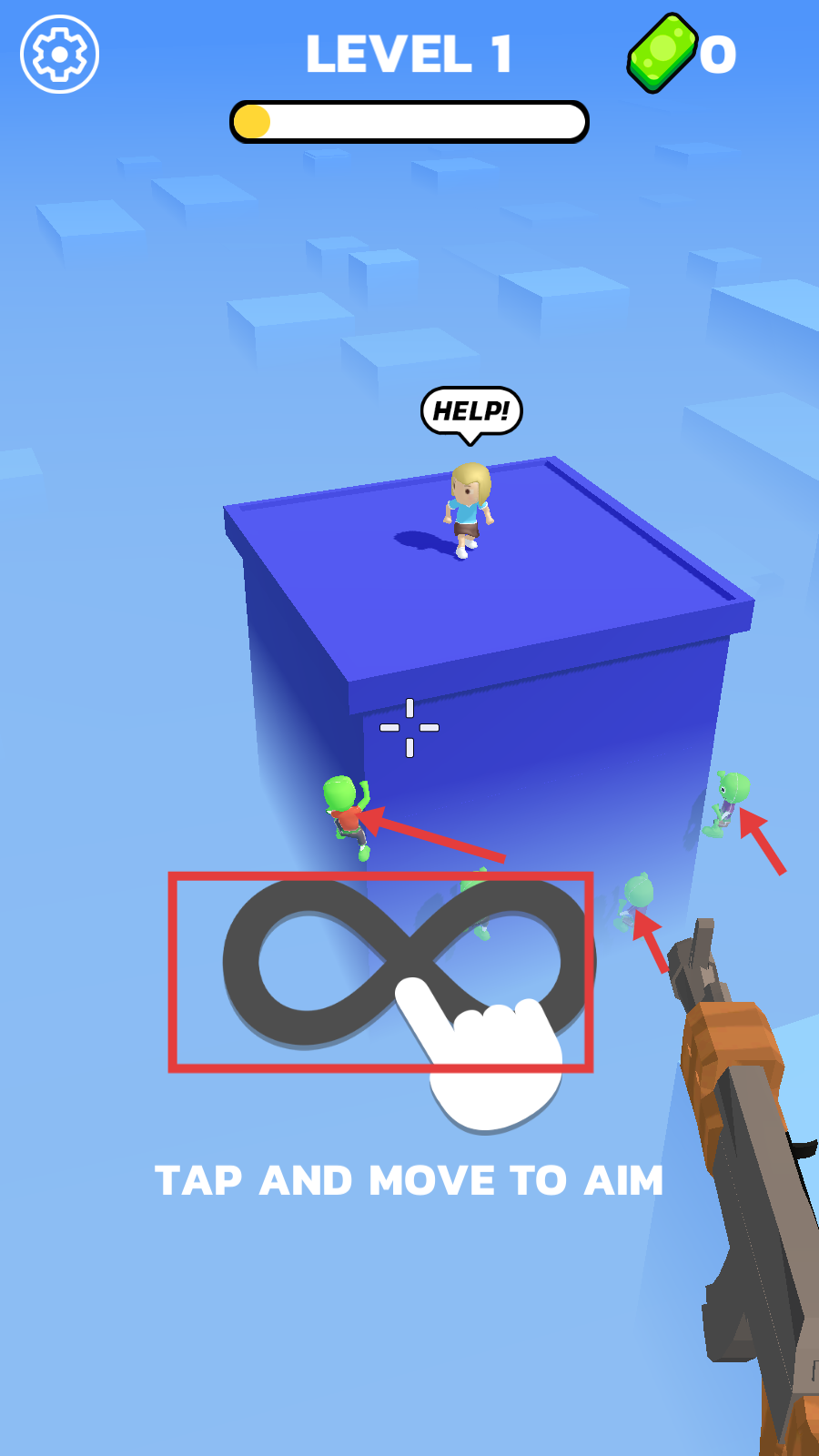 2、按提示【TAP-AND-MOVE-TO-AIM】,瞄准围攻人质的绿僵尸,清除威胁保护目标。