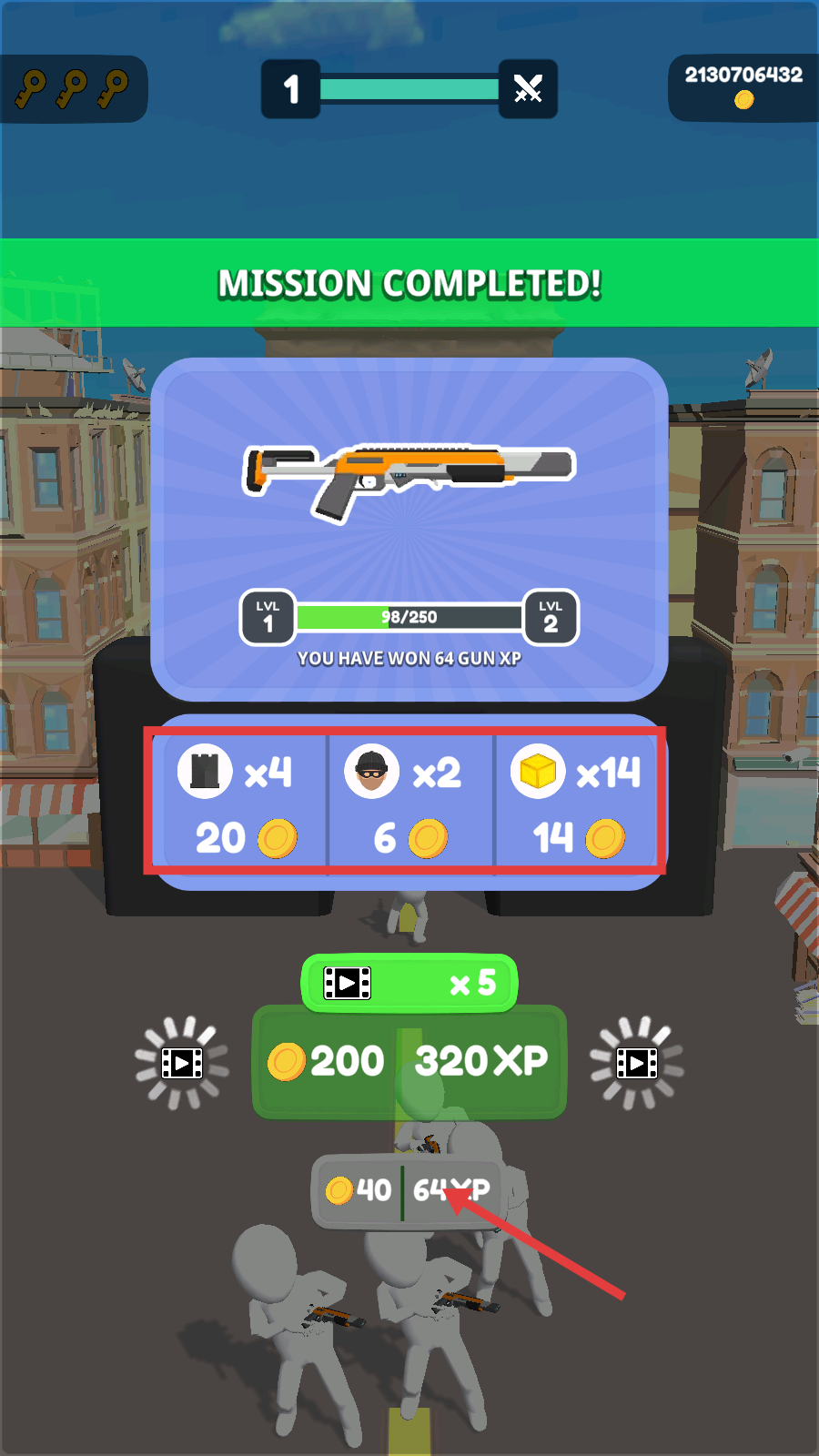4、完成任务后,领取【64-GUN-XP】等奖励,升级武器,为后续关卡储备战力。