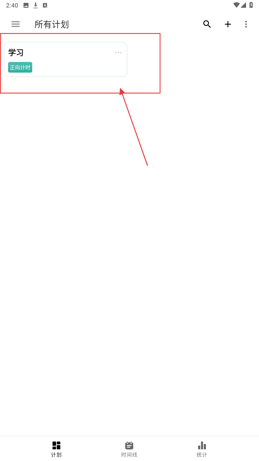 4、返回【所有计划】,查看已建计划,如“学习-正向计时”,管理执行。
