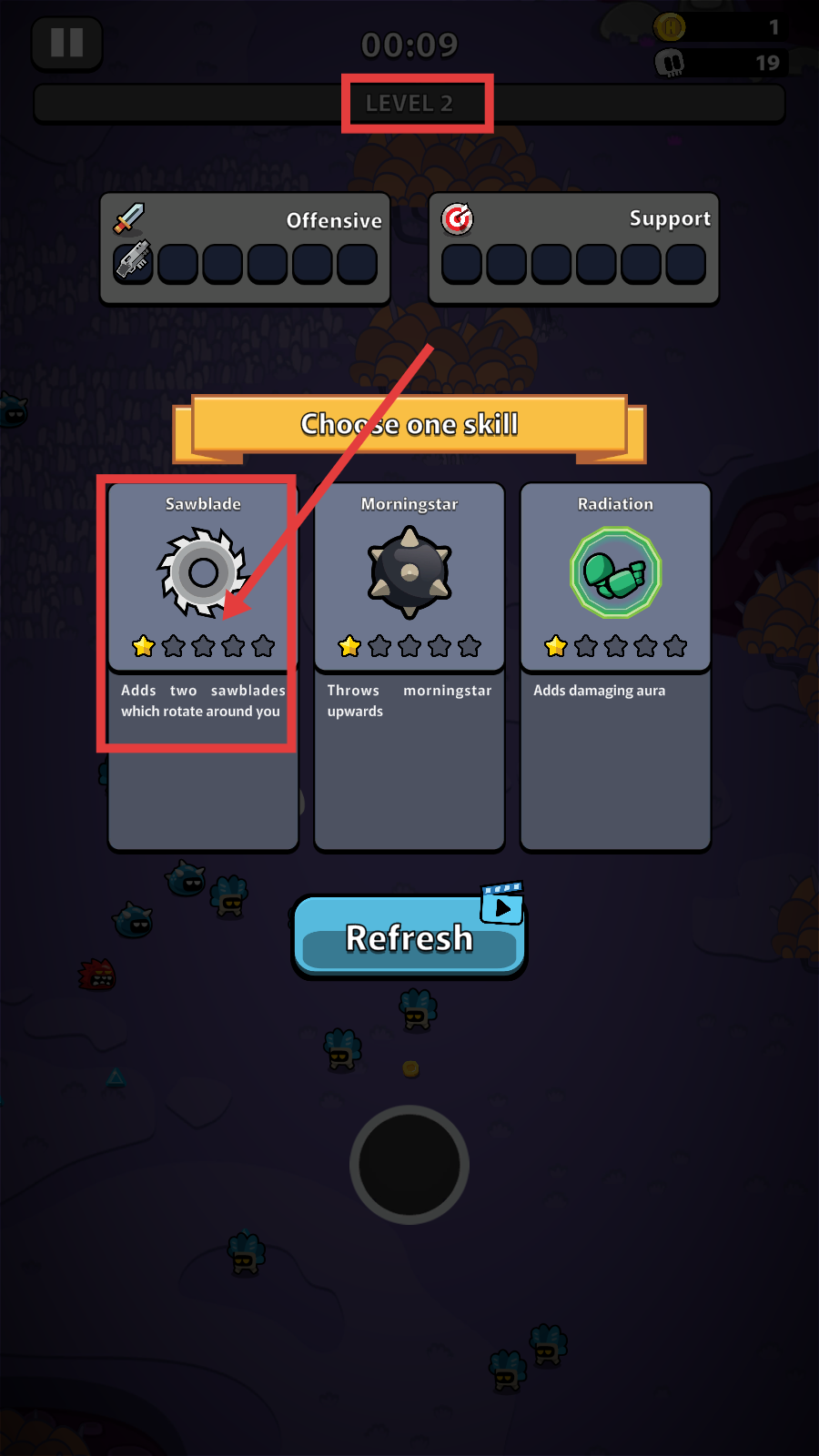 3、Level-2选择【Sawblade】技能,获环绕锯片助力输出,提升对抗怪物的生存战斗能力。