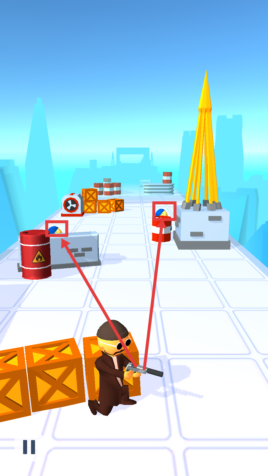 1、利用场景中【木箱】作掩体,观察蓝色敌人位置,规划安全射击角度。