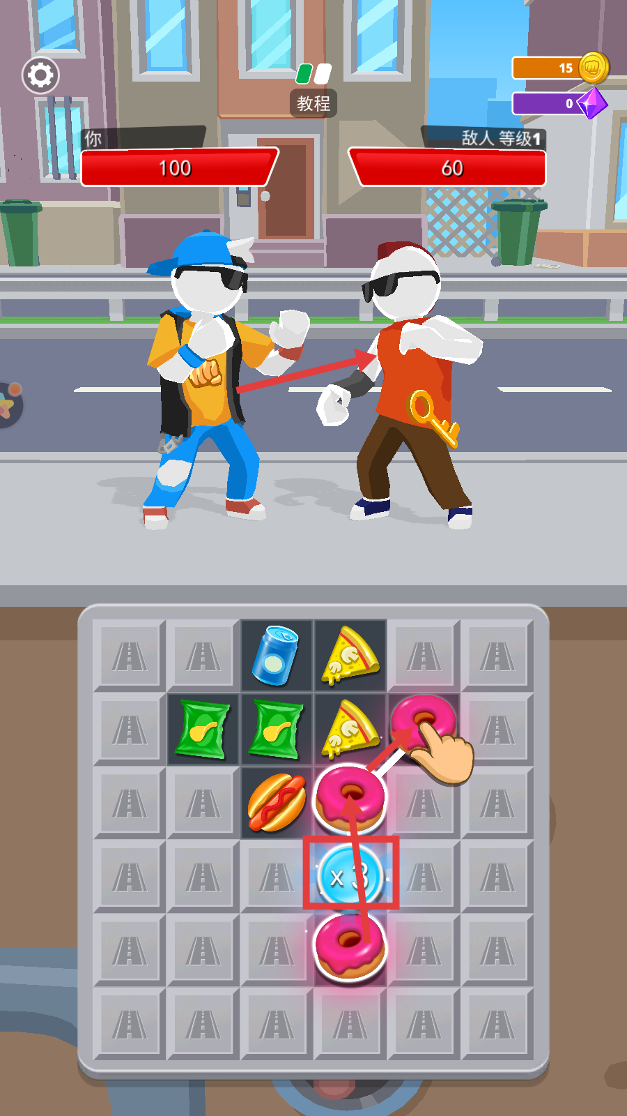 1、美食融合机制:创新性地将热狗汉堡等街头食物转化为攻击道具元素,夸张表现方式使每次交锋充满戏剧张力强化娱乐体验。