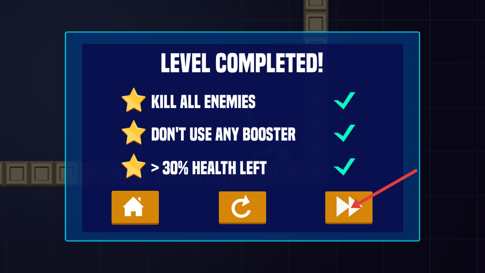 2、查看目标【KILL-ALL-ENEMIES】【DON'T-USE-ANY-BOOSTER】【>30%-HEALTH-LEFT】,点击【GO!】挑战。