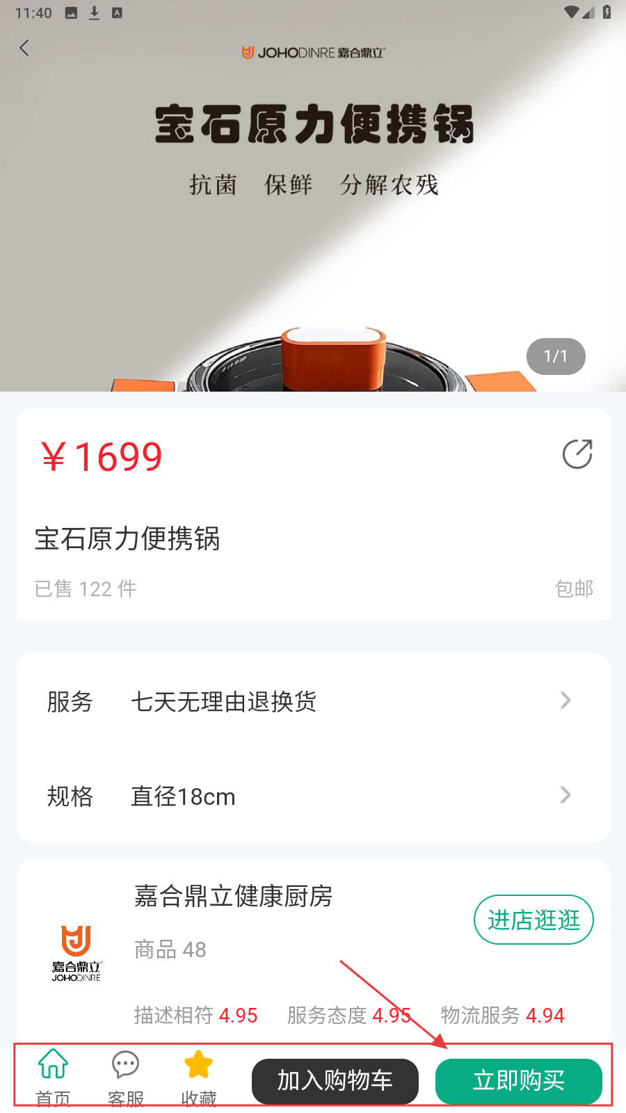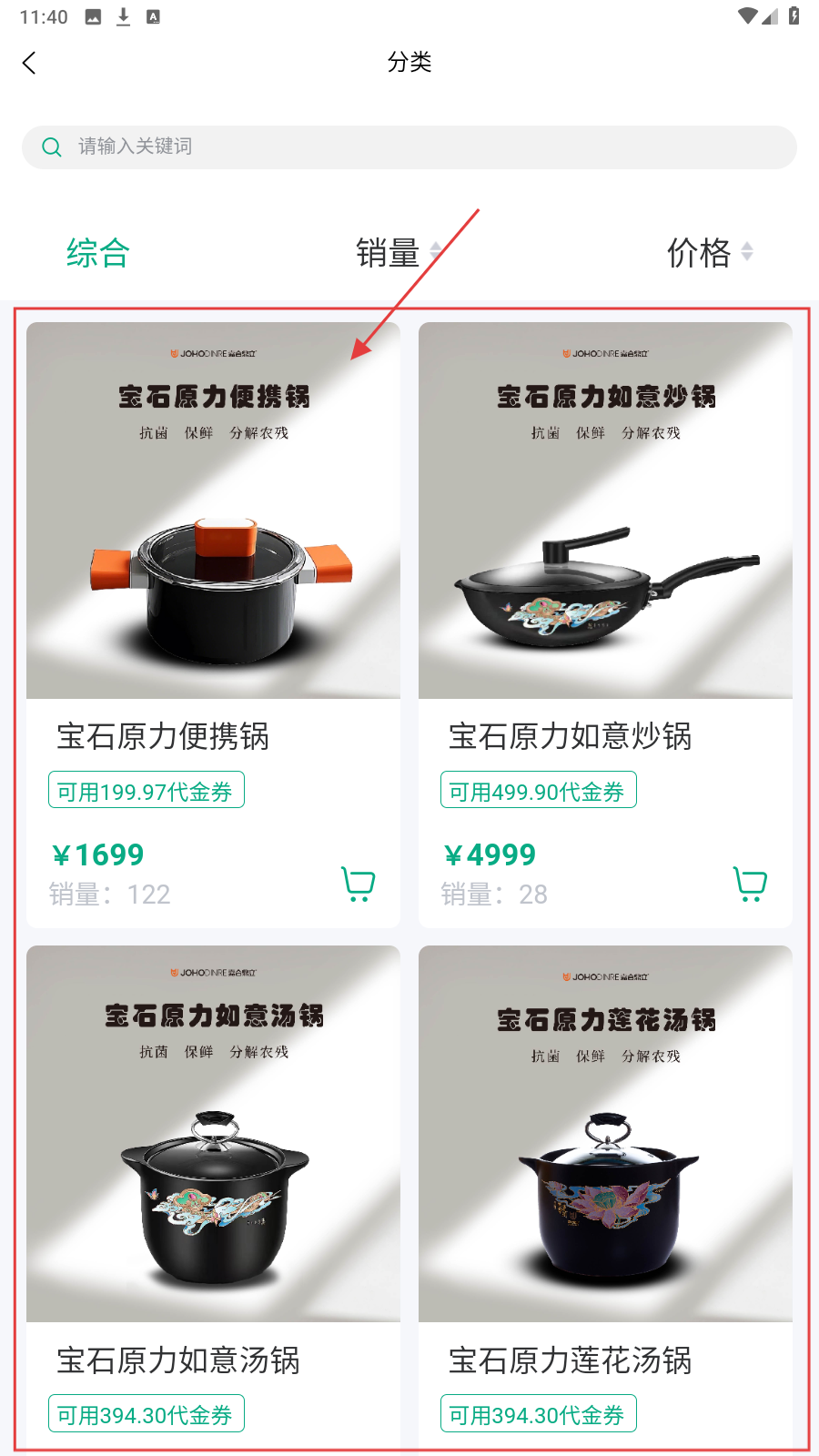 2、在分类页,选择【宝石原力便携锅】,进入商品详情页查看信息。