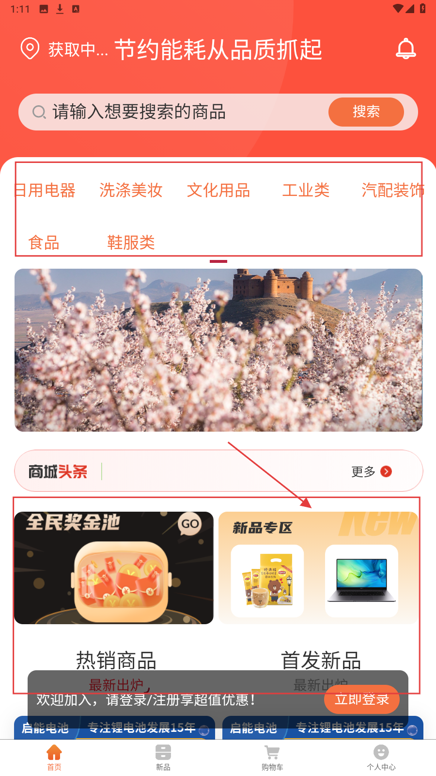 1、进入商城,可从分类找商品,也点【新品专区】浏览首发商品,快速发现心仪好物。