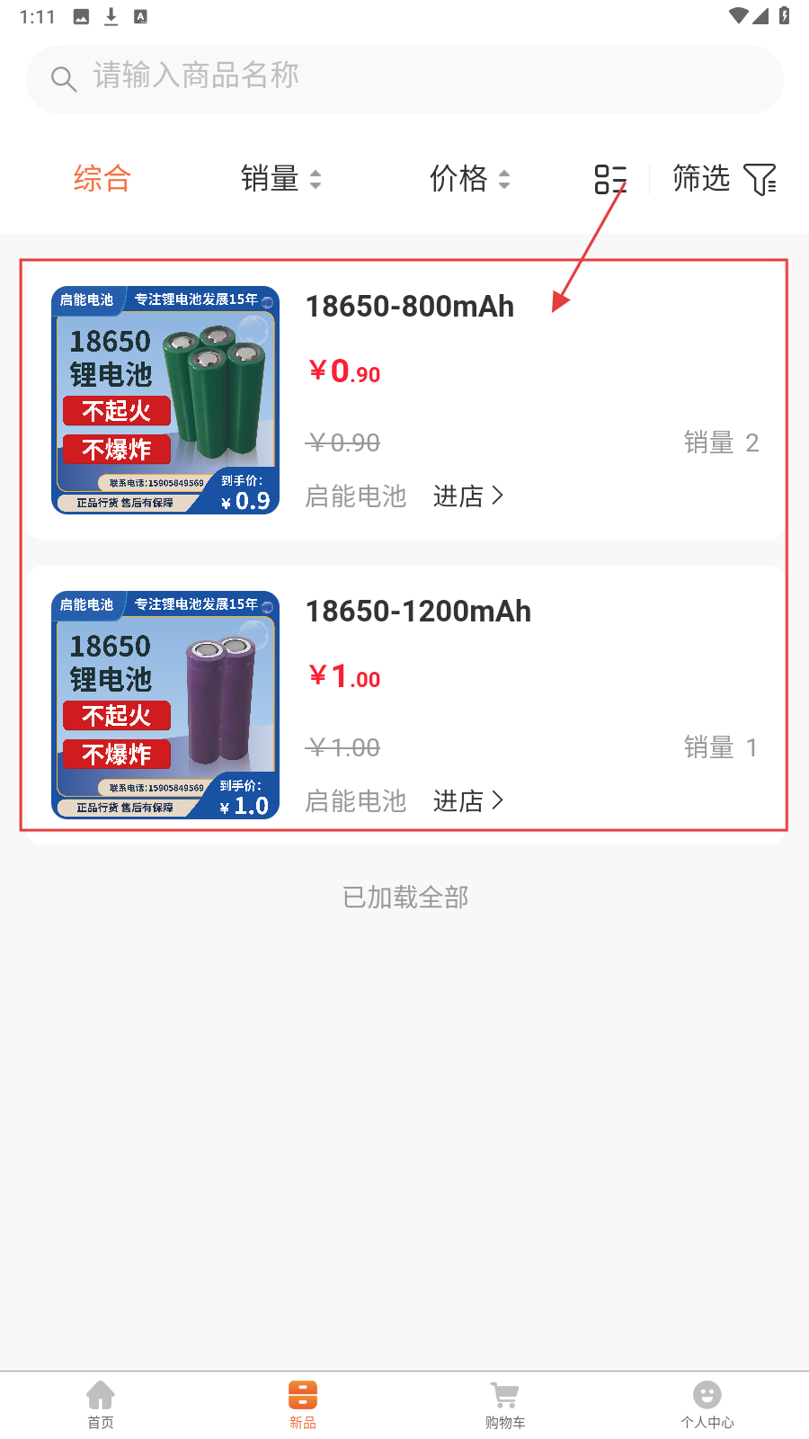 2、在【新品】页面,依据综合、销量等排序,找到心仪商品点击进入。