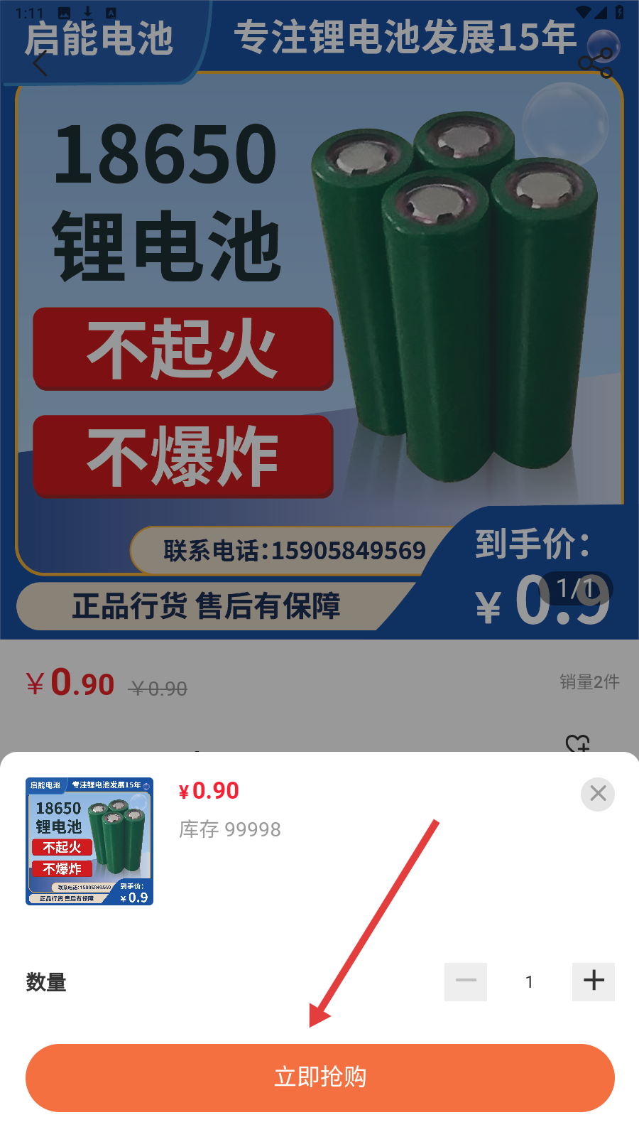4、选好购买数量,确认库存后,点击【立即抢购】完成下单,快速锁定商品。