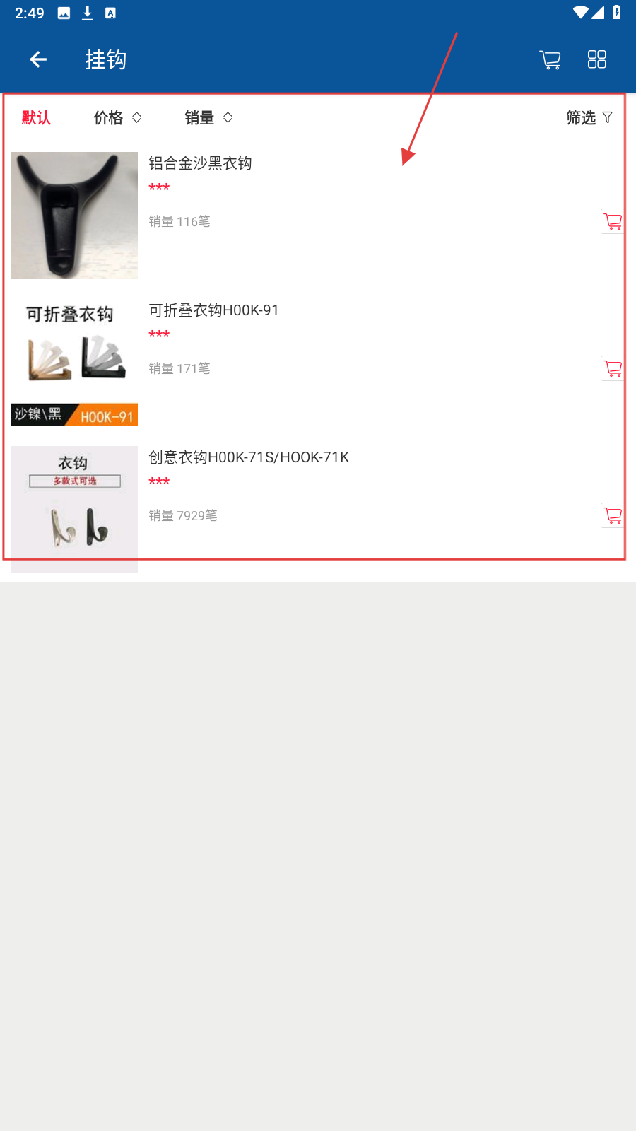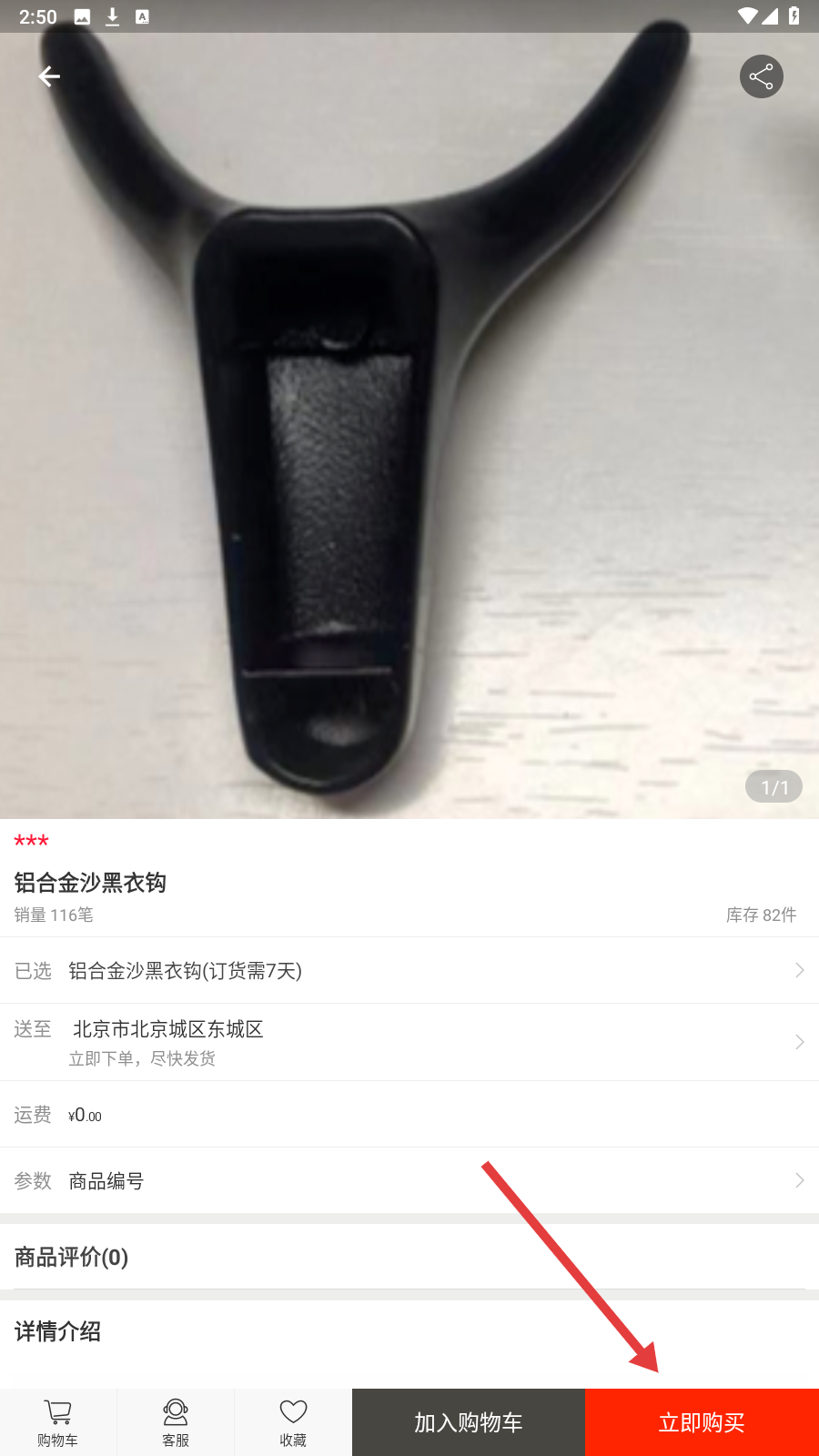 3、浏览挂钩商品列表,选【铝合金沙黑衣钩】,进入详情页确认信息。