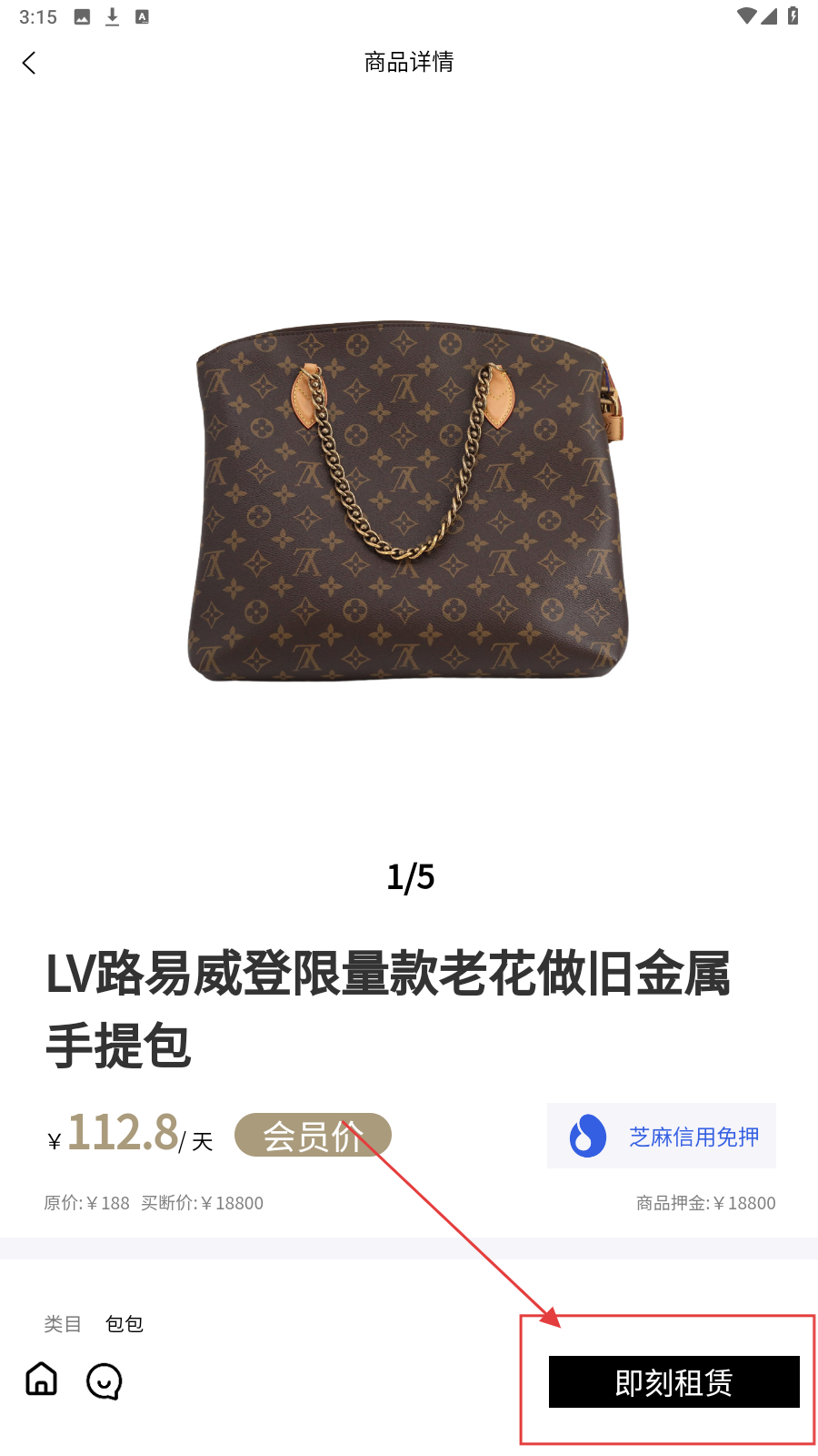 2、在商品列表,选心仪包包(如LV限量款),进入详情页,确认会员价、押金等。