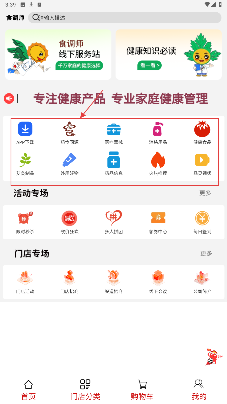 1、进入首页,通过【药食同源】分类,快速定位养生产品板块,开启健康选购。