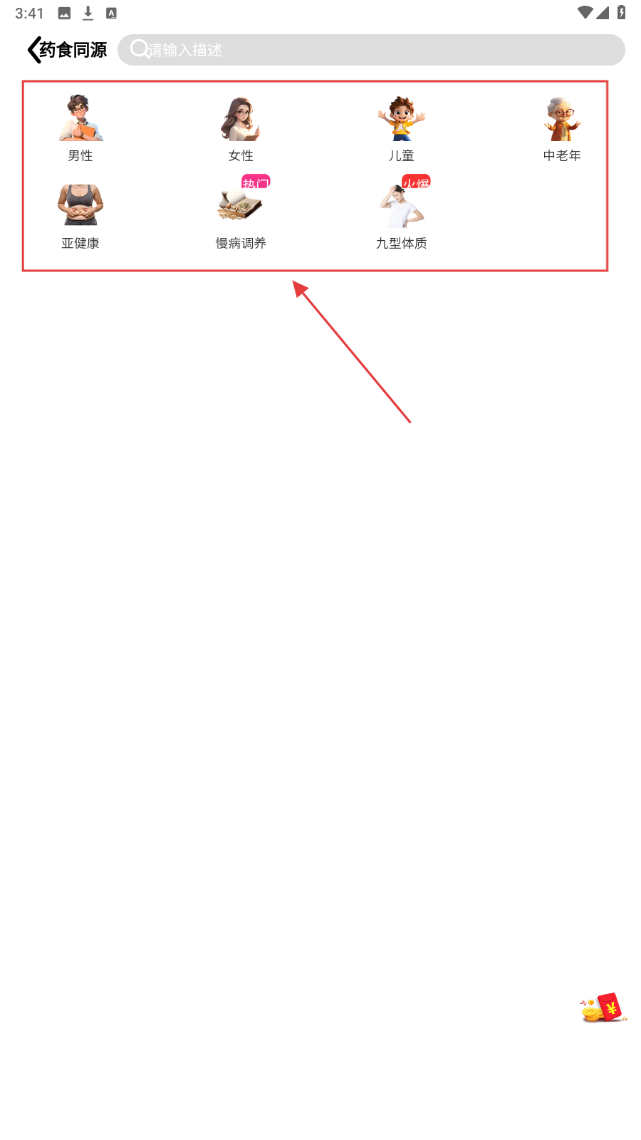 2、在【药食同源】页,选对应人群(如男性、女性等)或健康需求(如慢性病调养),精准找适配产品。