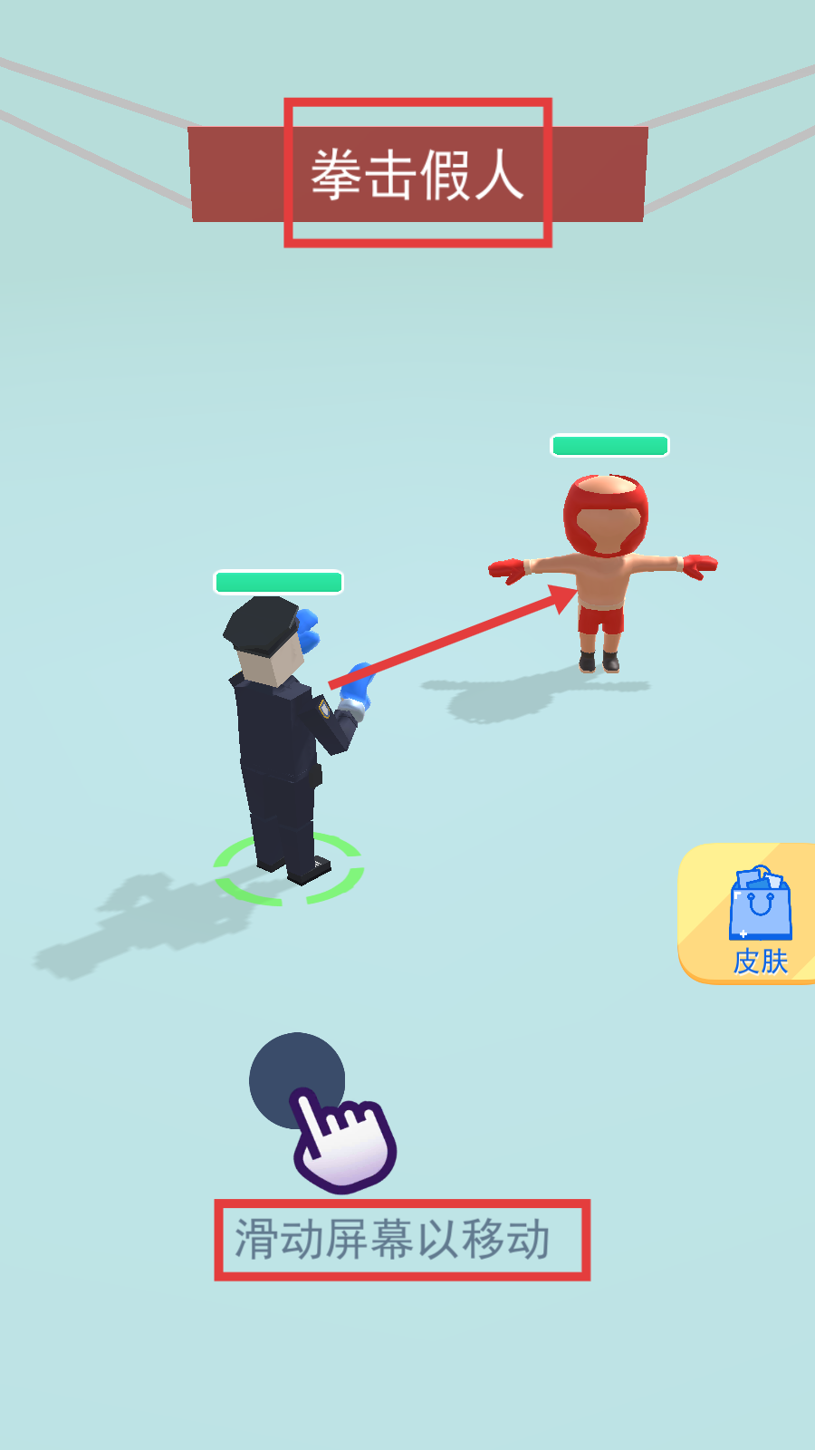 2、战斗场景中,按提示【滑动屏幕】操控角色移动,目标为中间的【拳击假人】。