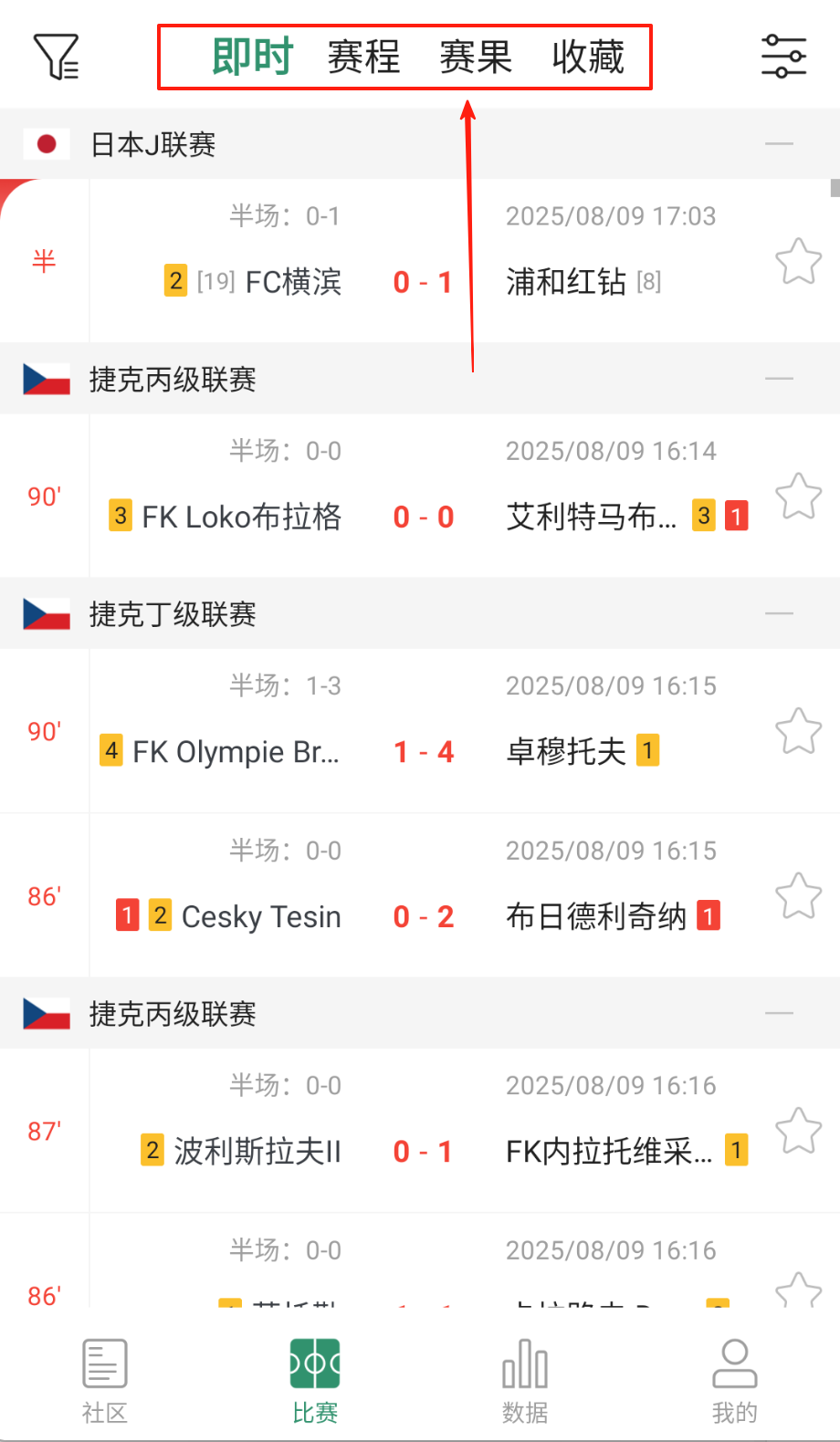 1、赛事中心实时更新全球足球比赛比分与赛程信息,用户可按日期、联赛、球队等多维度筛选查找,重要赛事可添加星标在列表顶部突出显示。