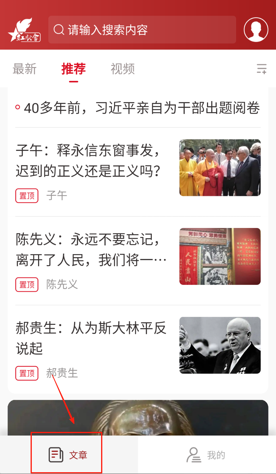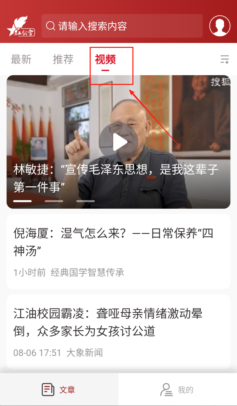 1、下载安装后打开APP,在首页浏览推荐的红色文化文章与视频,按主题分类查找感兴趣的内容,支持关键词搜索精准定位。