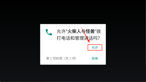 1、授权通话:出现“允许‘火柴人与怪兽’拨打电话和管理通话吗?”弹窗时,点击“允许”以授予权限并继续。