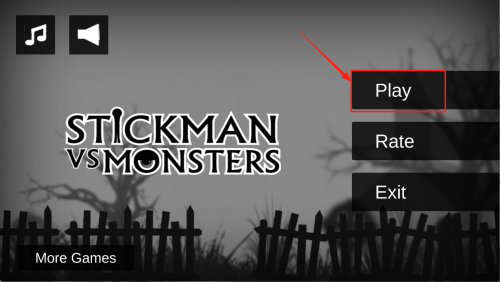 2、启动游戏:在主界面“STICKMAN VS MONSTERS”画面,轻触“Play”按钮进入游戏。