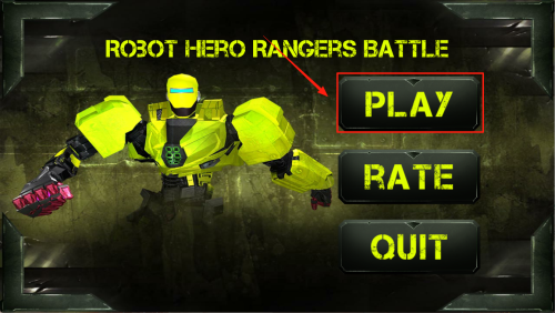 2、启动游戏:在“ROBOT HERO RANGERS BATTLE”主界面,轻触“PLAY”按钮进入游戏。