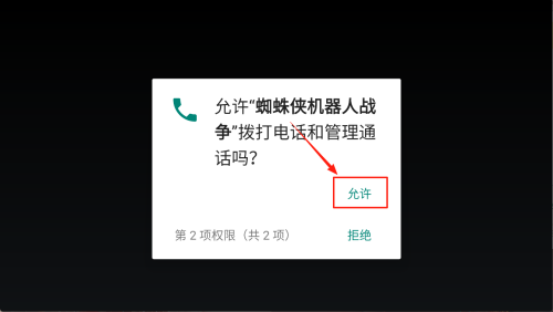 1、授权通话:屏幕弹出“允许‘蜘蛛侠机器人战争’拨打电话和管理通话吗?”时,点击“允许”继续。