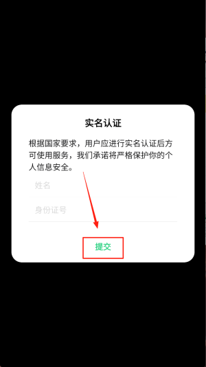 2、实名认证:在“姓名/身份证号”栏填入真实信息后点击“提交”。