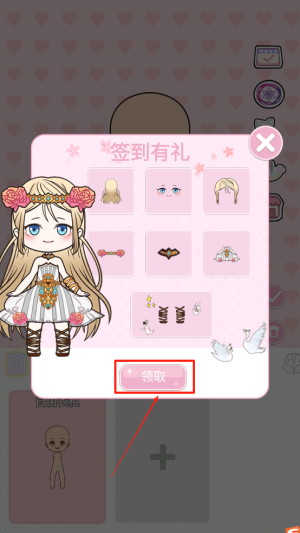 2、领取奖励:在游戏界面中,点击“领取”按钮获取签到奖励,这些奖励可以帮助你解锁更多装扮选项。