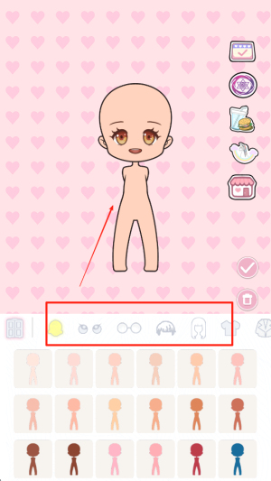 2、挑选装扮元素:从免费资源中选择肤色、发型等元素,组合搭配塑造娃娃基础形象,借助贴纸与背景增强风格特色。