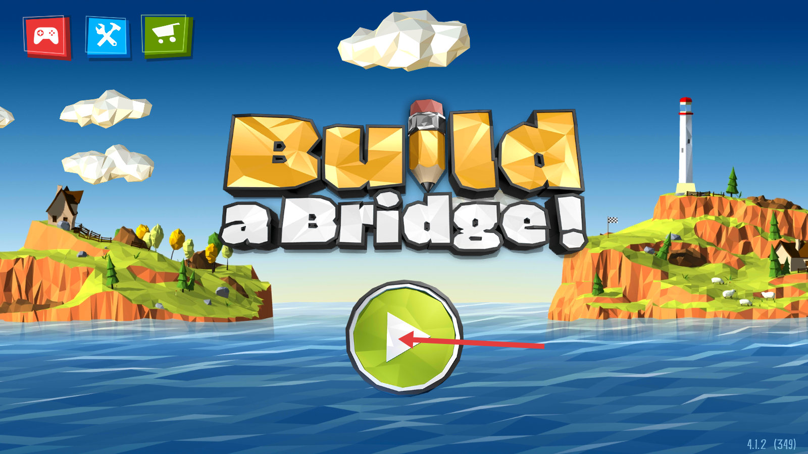 1、点击主界面【Build-a-Bridge!】下方绿色播放按钮,进入桥梁建造关卡,开启工程挑战。