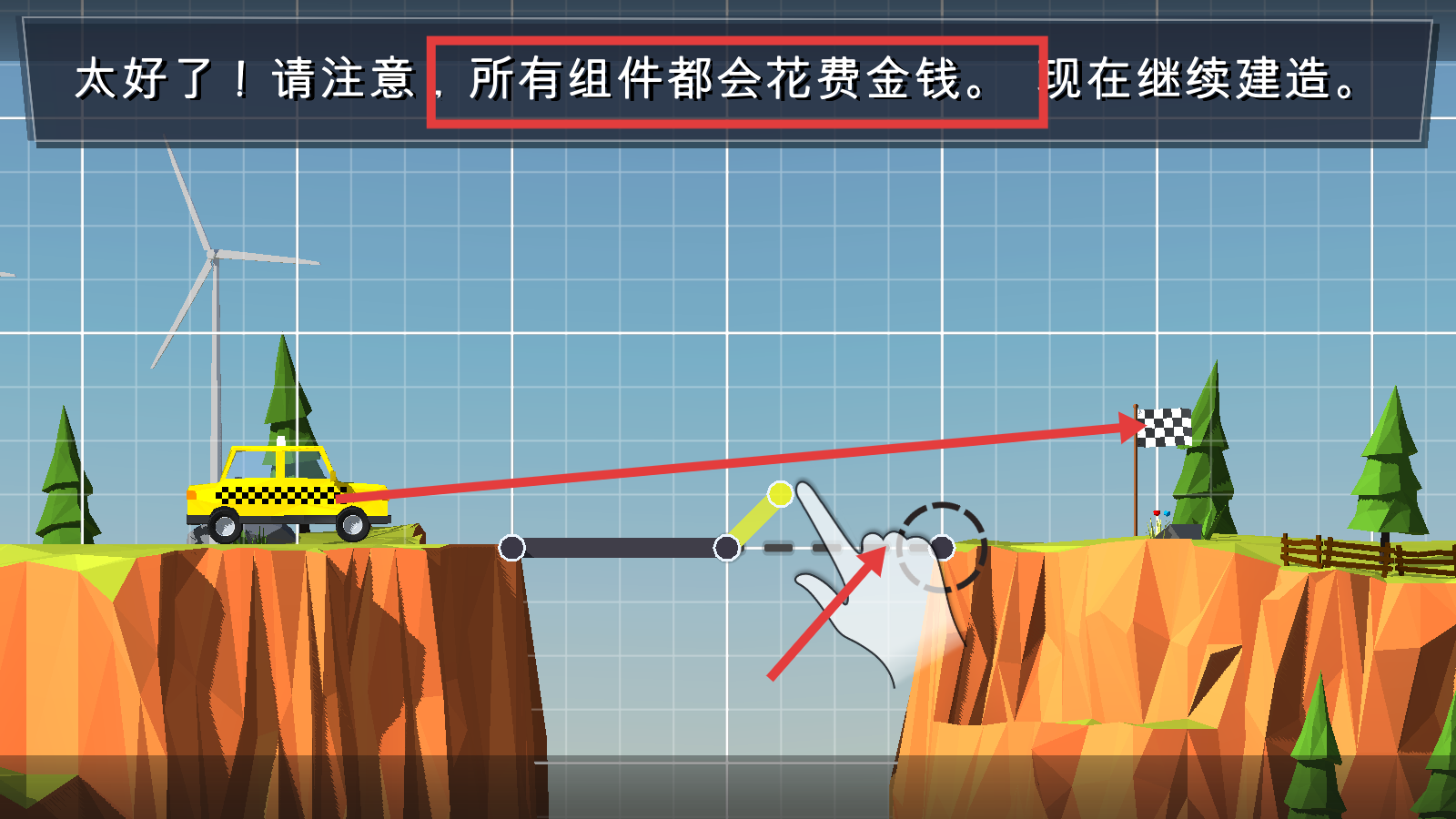 3、留意【所有组件都会花费金钱】,规划预算,合理布置组件,平衡成本与桥梁稳固性。