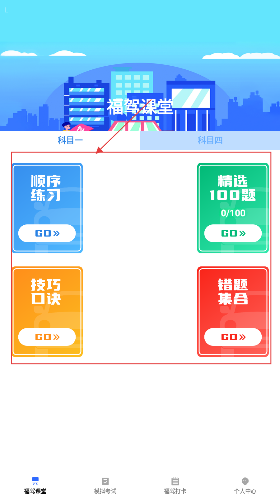 1、进入【福驾课堂】页面,选科目一【顺序练习】,开启基础题训练。