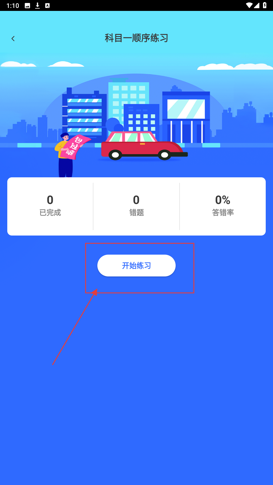 2、点击【开始练习】,进入答题页,进行科目一刷题。