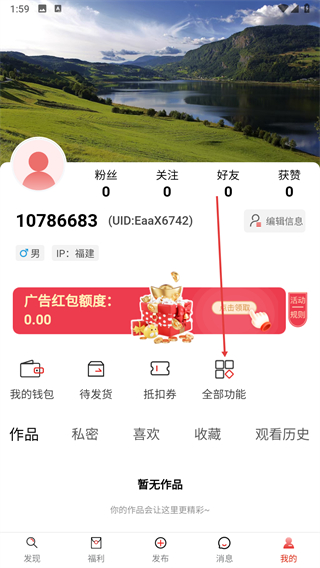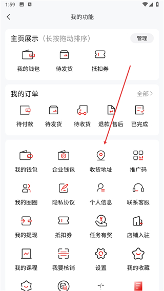 2、在我的功能页面找到收货地址选项,点击进入地址管理页。